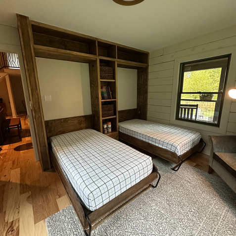 Two custom-built Murphy beds were designed to transform a guest area into a versatile, modern living space. The cabinetry was crafted with clean lines and a sleek finish, giving the room a polished and contemporary feel while maximizing functionality.